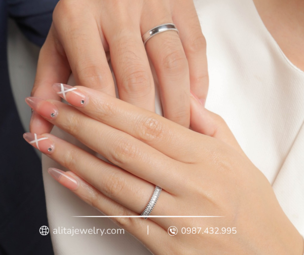 Nhẫn cặp vàng trắng 14K CNC013