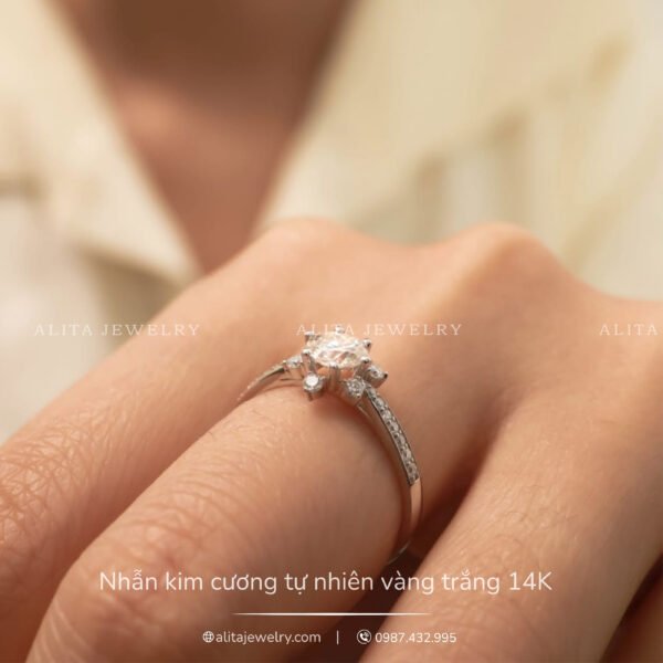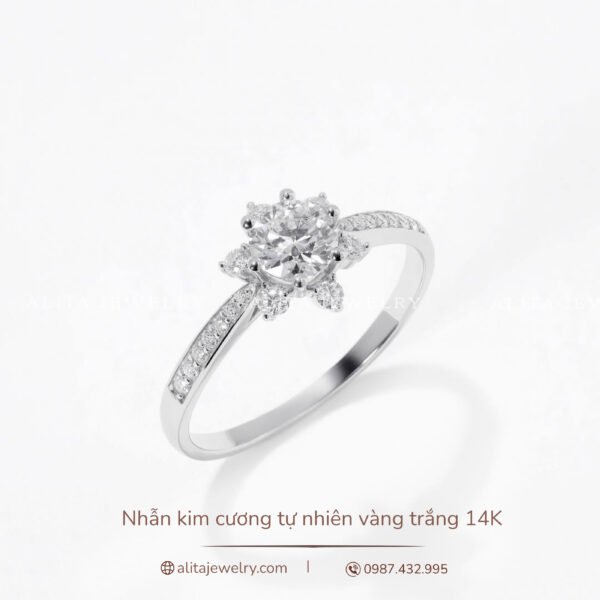 Nhẫn kim cương bông tuyết vàng trắng 14K NN024